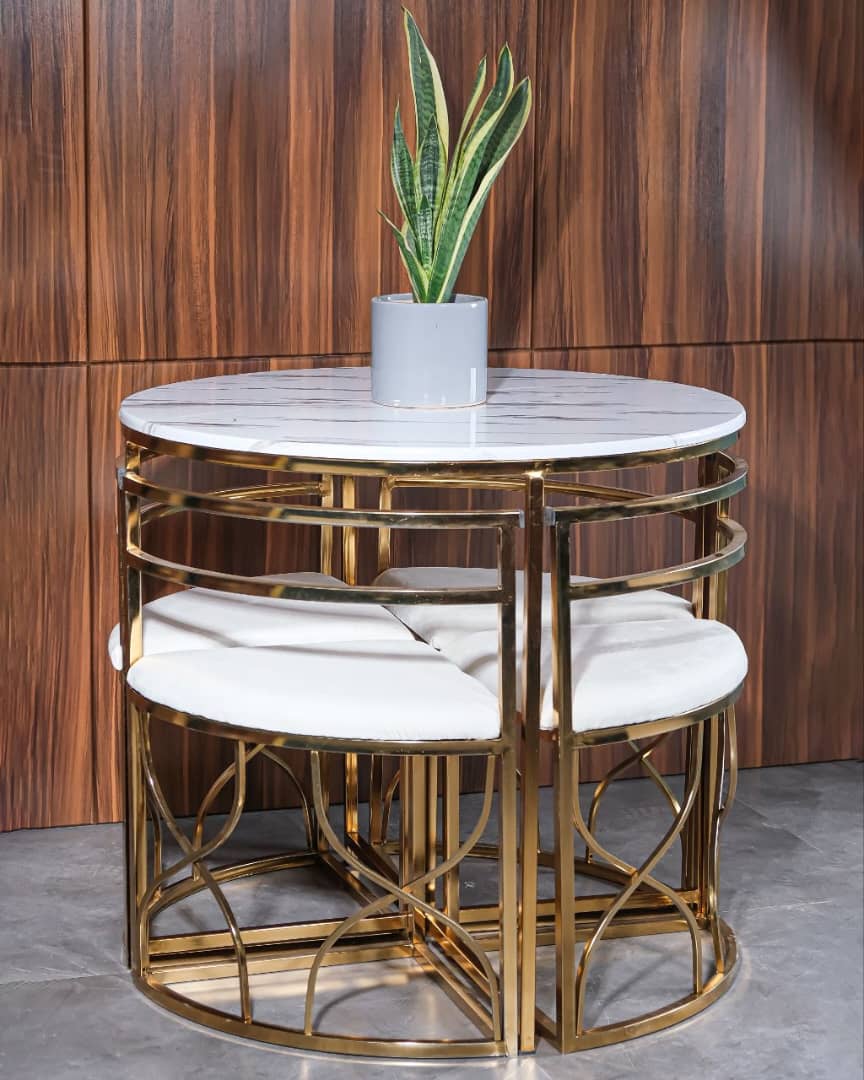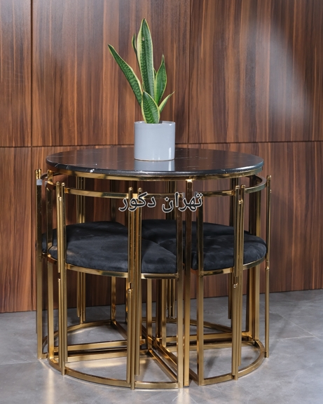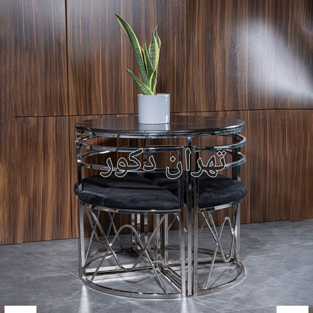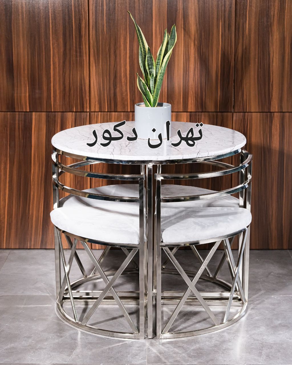 دستهبندی: دسته میز و صندلی غذا خوریبرچسبها : مناسب برای منزل کافه و رستورانابعاد: قطر ۹۰ارتفاع: ۸۷اسفنج: ۴ سانت